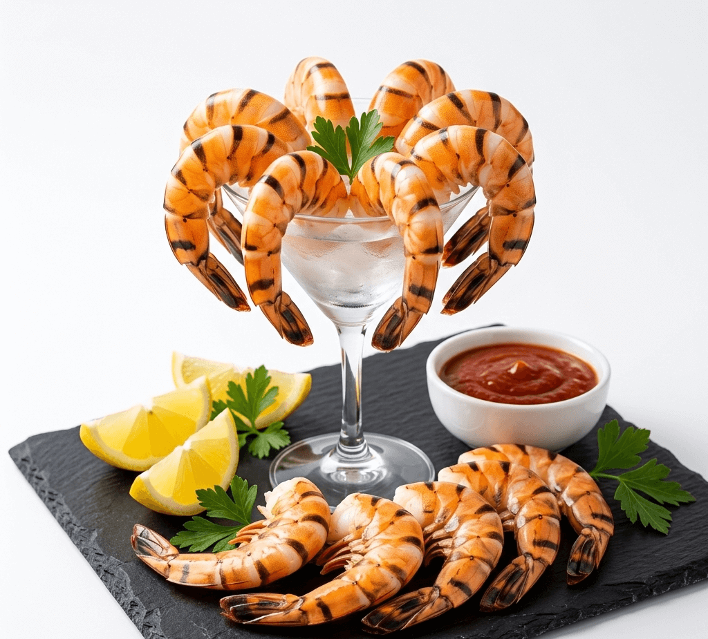 Ready-to-serve tiger prawns cocktail — cleaned,